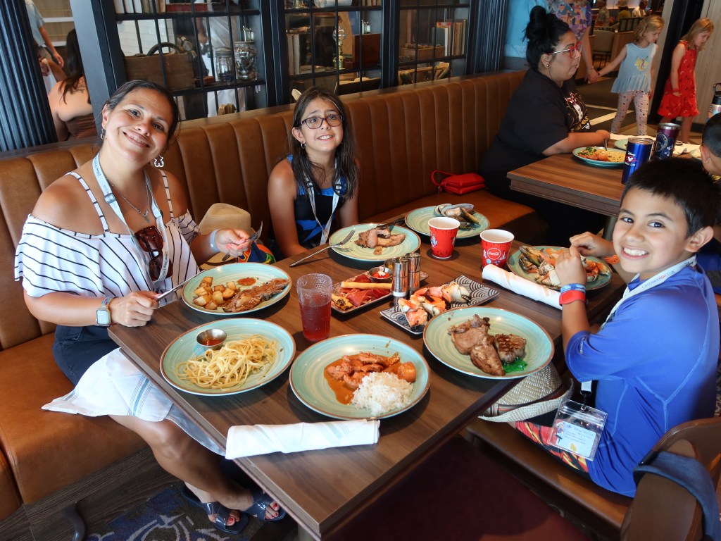 The real magic began when we boarded the Disney Wish, Disney Cruise Line’s newest and most enchanting ship. Joining us on this part of the adventure was the Rayburn family, and together, we enjoyed a perfect blend of relaxation and Disney storytelling on the high seas.