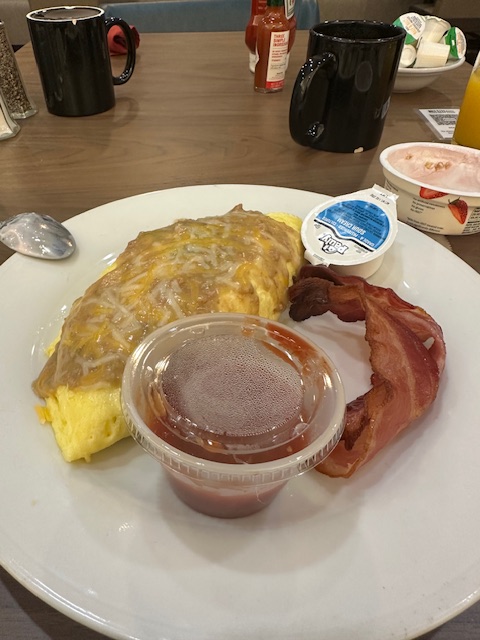 After dinner, I decided to unwind with a game of poker, enjoying the local scene before calling it a night. The next morning, breakfast at the Hilton came with an unexpected highlight—the server’s homemade green salsa. It had just the right kick and was a great way to start the day.